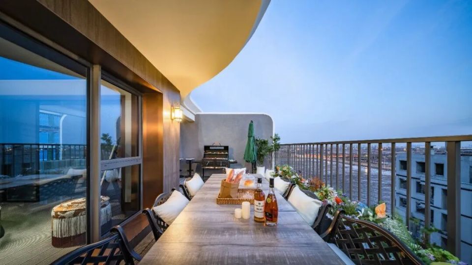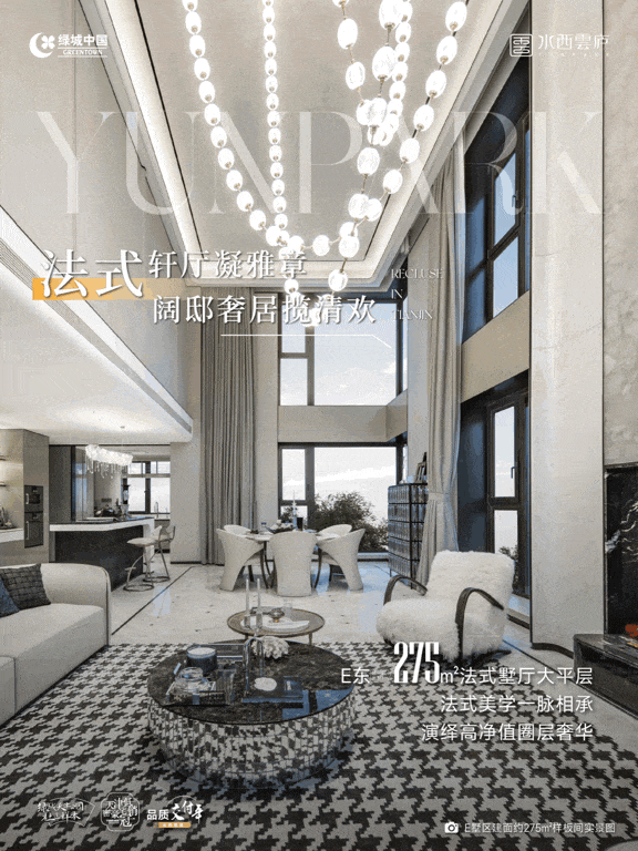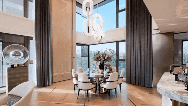 L型咬合户型的设计,实现了天津市场罕见的6.4米全厅挑空——这一尺度通常只出现在独栋别墅的客厅,而今被完整引入平层产品之中,铸就了绿城在天津首个法式顶奢级作品。