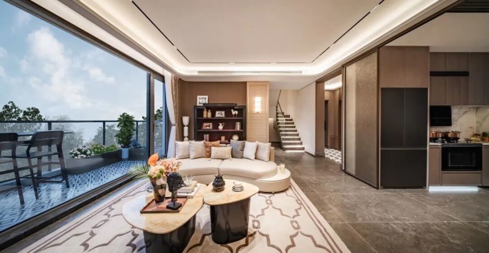 步入样板庭院,首先映入眼帘的,是公园湖岸环抱中的私家庭院——它不是建筑的附属,而是生活的延展。穿过庭院,私家电梯直达各层,形成完整的垂直动线。