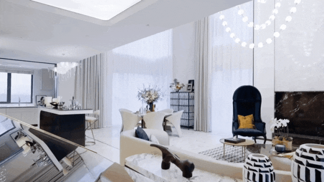 建面约310平米法式墅厅大平层,特邀HBA操刀打造,采用与上海和平饭店一脉相承的“法式复古”风格。