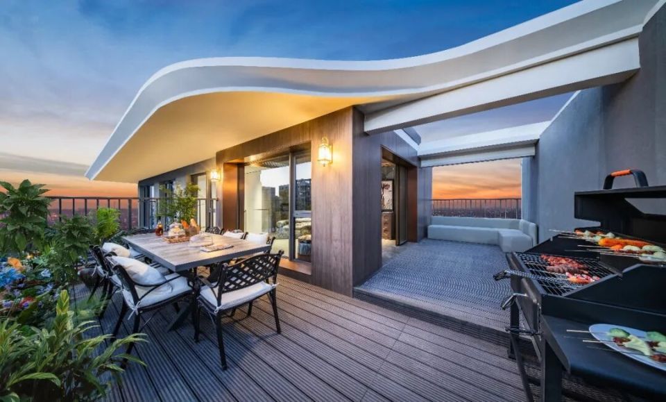 绿城在规划230平米空中花园的户型空间时,更是追求极致,芬迪白玉石奢装,超幅南向面宽,每一处空间都是由内到外的细致考量。